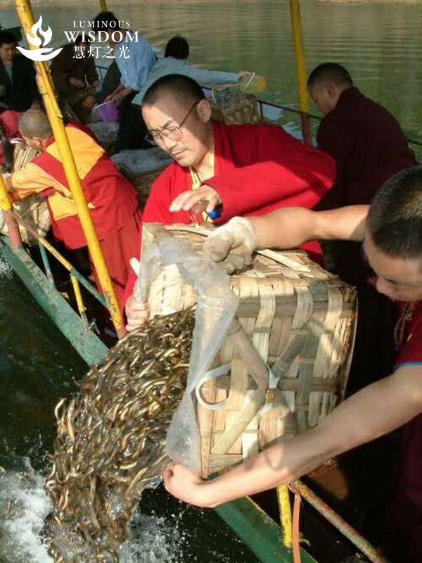 In response to witnessing the severity and cruelty of animal slaughter in inland China, since 1997 Khenpo has set aside time each year to undertake largescale life-release activities. In doing so, he has sought to promote the equality of all living beings, the importance of abstaining from taking lives, and the protection of animals.  Moreover, he has continuously sought to make improvements and adjustments to his method to releasing lives in line with a ‘rigorous, careful attitude’ and ‘scientific technique.’ In the past twenty years, billions of living beings have been saved from slaughter, earning him the respected moniker ‘Life release Khenpo.’